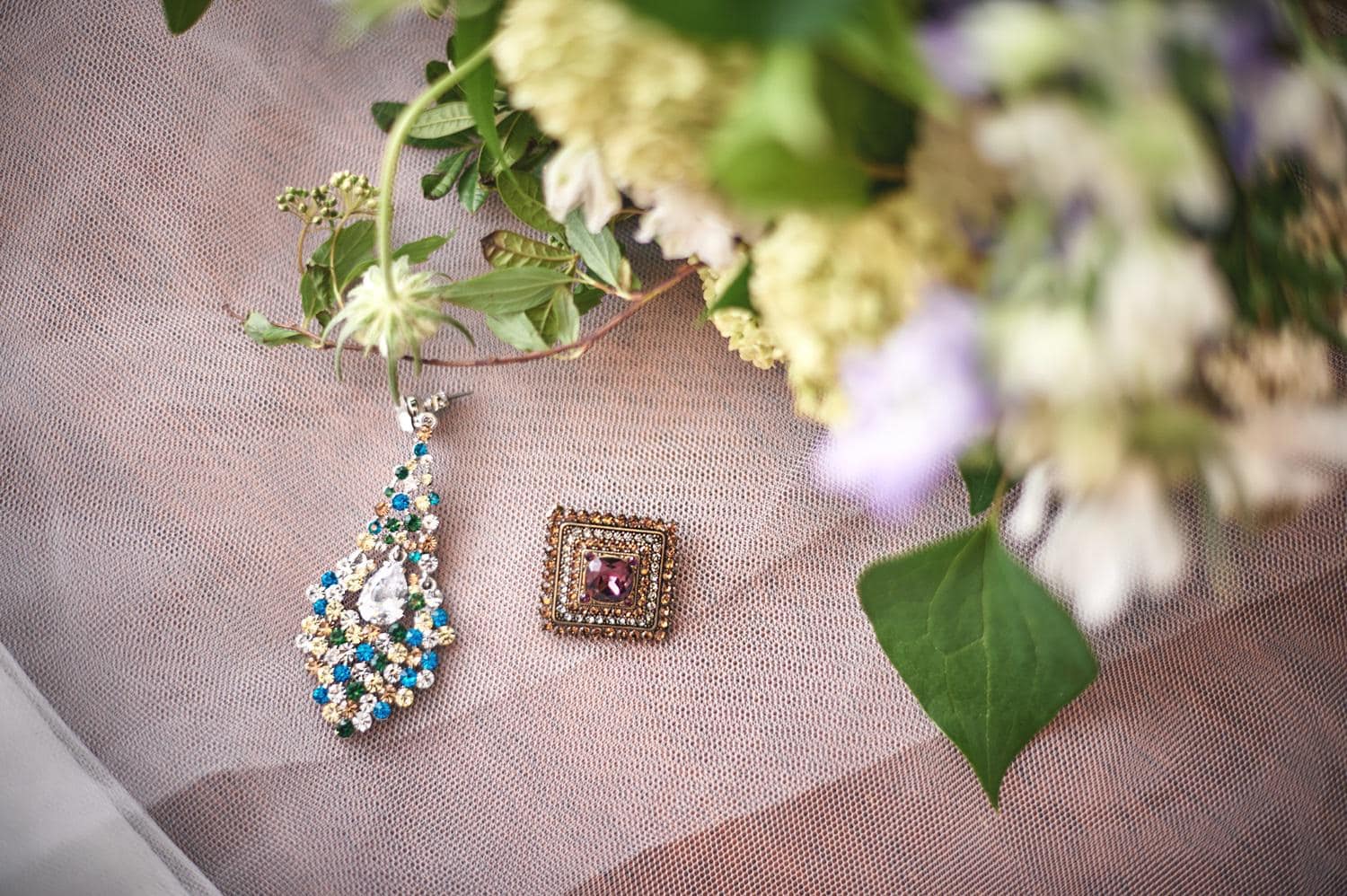 우아한 티어드롭 실루엣: 세심하게 배치된 크리스탈이 샹들리에 형태의 눈물방울 라인을 그리며, 얼굴선을 더욱 화사하고 갸름해 보이게 연출합니다.