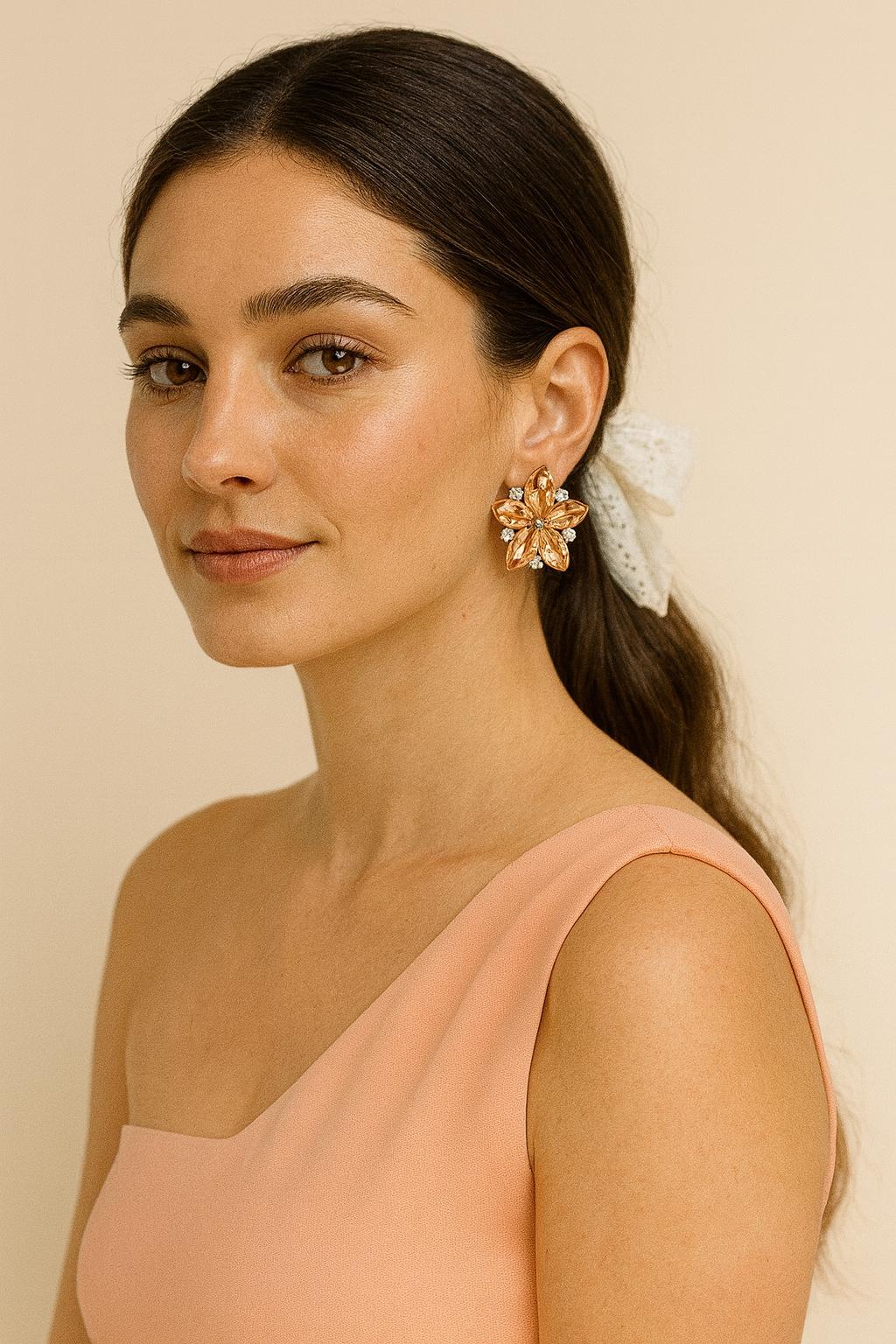 정원의 꽃잎이 내려앉은 듯한 정교한 디자인입니다. 5개의 마키즈 컷 꽃잎과 5개의 라운드 스톤이 조화를 이루어, 움직임에 따라 매 순간 다채롭고 찬란한 빛을 반사합니다.