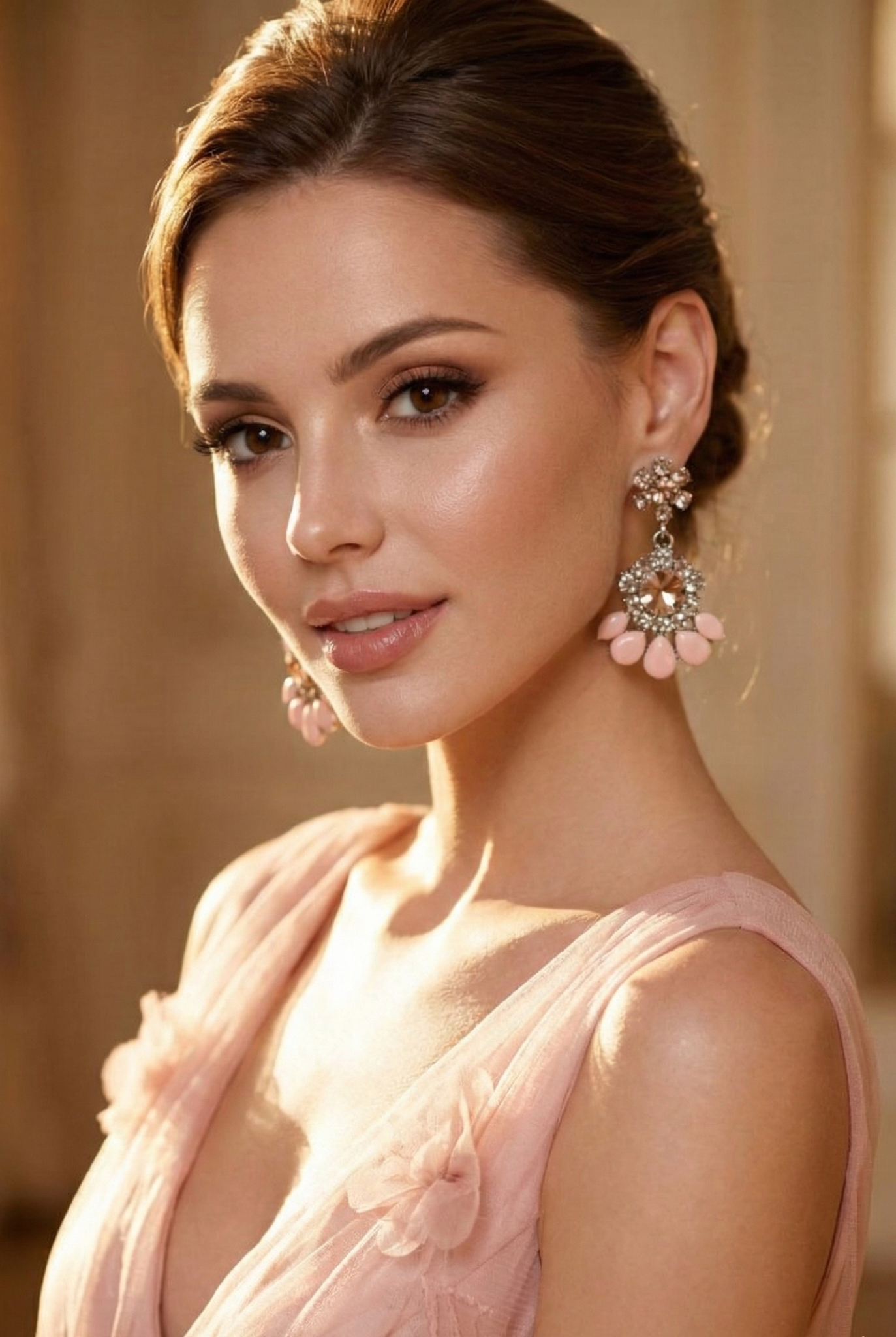 Luminous Palette: Delicate rosy tones that bring a fresh, radiant energy to bridal or evening ensembles.