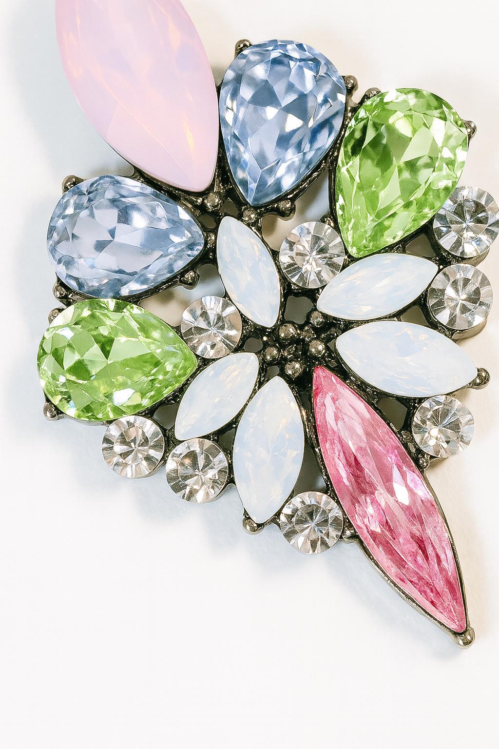섬세한 다각도 파세팅: 정교하게 커팅된 다양한 형태의 체코 스톤이 모든 각도에서 빛을 머금고 반사하여 눈부신 존재감을 드러냅니다.